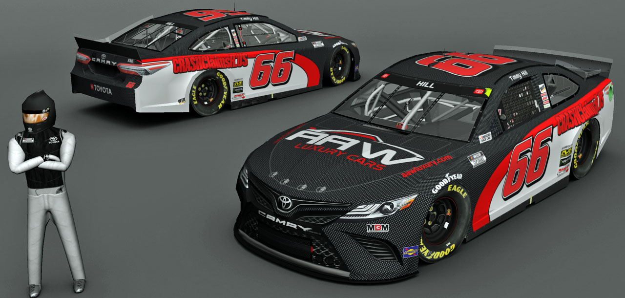 2021 #66 Timmy Hill from Indy Road Course. MENCS 2019 mod & template - Splash n' Go with Lefty template update...... #'s - BER...... B-pillar decals - Rick's 2021 B-Pillars...... Sponsor logos from various internet sites/me...... Pit crew - SteveZ ( modified )...... NRatings for driver rating...... Render - The Mod Squad...... Screen Shot:
