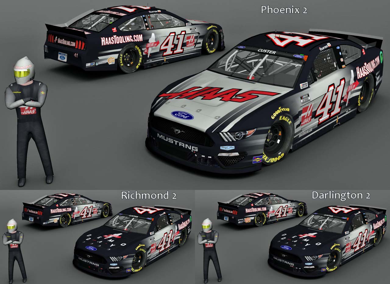 Three 2021 #41 Cole Custer Mustangs from Darlington 2, Richmond 2 and Phoenix 2. MENCS 2019 mod & template - Lefty template update...... #'s - BER...... B-pillar decals - Rick's 2021 B-Pillars...... Sponsor logos from various internet sites...... Pit crew - SteveZ ( modified )...... Driver rated with NRatings...... Renders - The Mod Squad......